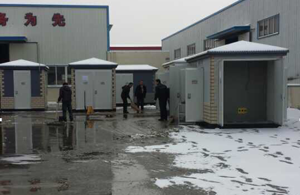 2015年的第一場雪,來的真是突然。最近由于公司訂單多,工期緊,所以生產(chǎn)任務(wù)繁忙。為了及時保質(zhì)保量的出貨,大家齊心協(xié)力,克服嚴寒,加班搶點的趕工。就連今年的第一場雪都沒時間好好欣賞就投入到生產(chǎn)搶工中,在廠領(lǐng)導和工人的不懈努力中,終于完成了花果山西游大道箱變、少年宮10KVA箱變和薔薇島旅游開發(fā)箱變按時完工。