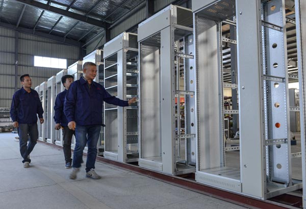 蘇明電器總經(jīng)理周慶忠查看生產(chǎn)線